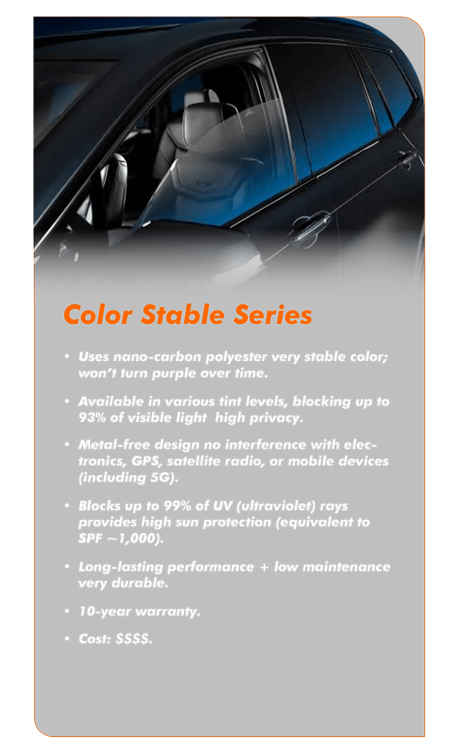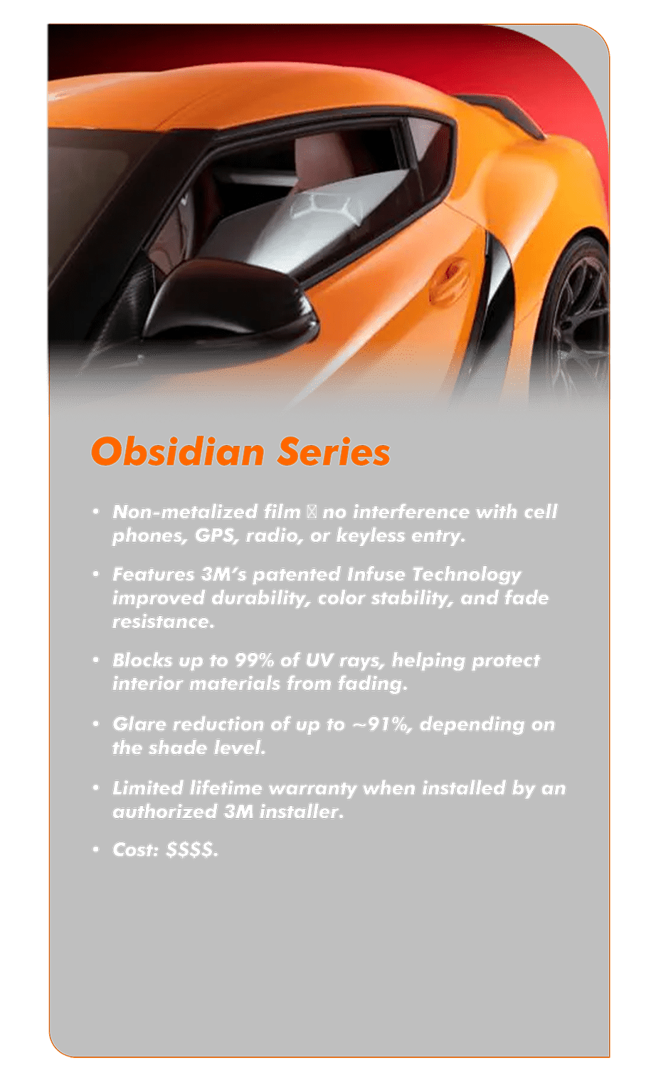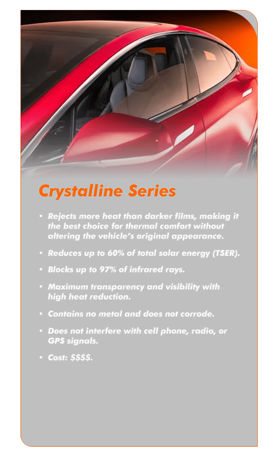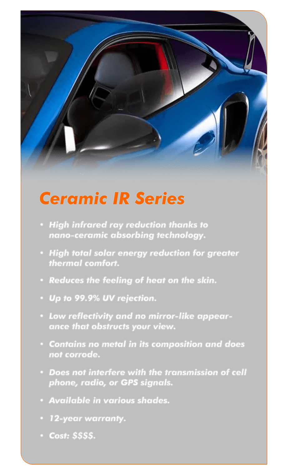films that combine protection, comfort, and style. They block up to 99% of UV rays, reduce interior heat, and deliver an elegant, understated look the choice of true automotive enthusiasts worldwide.
